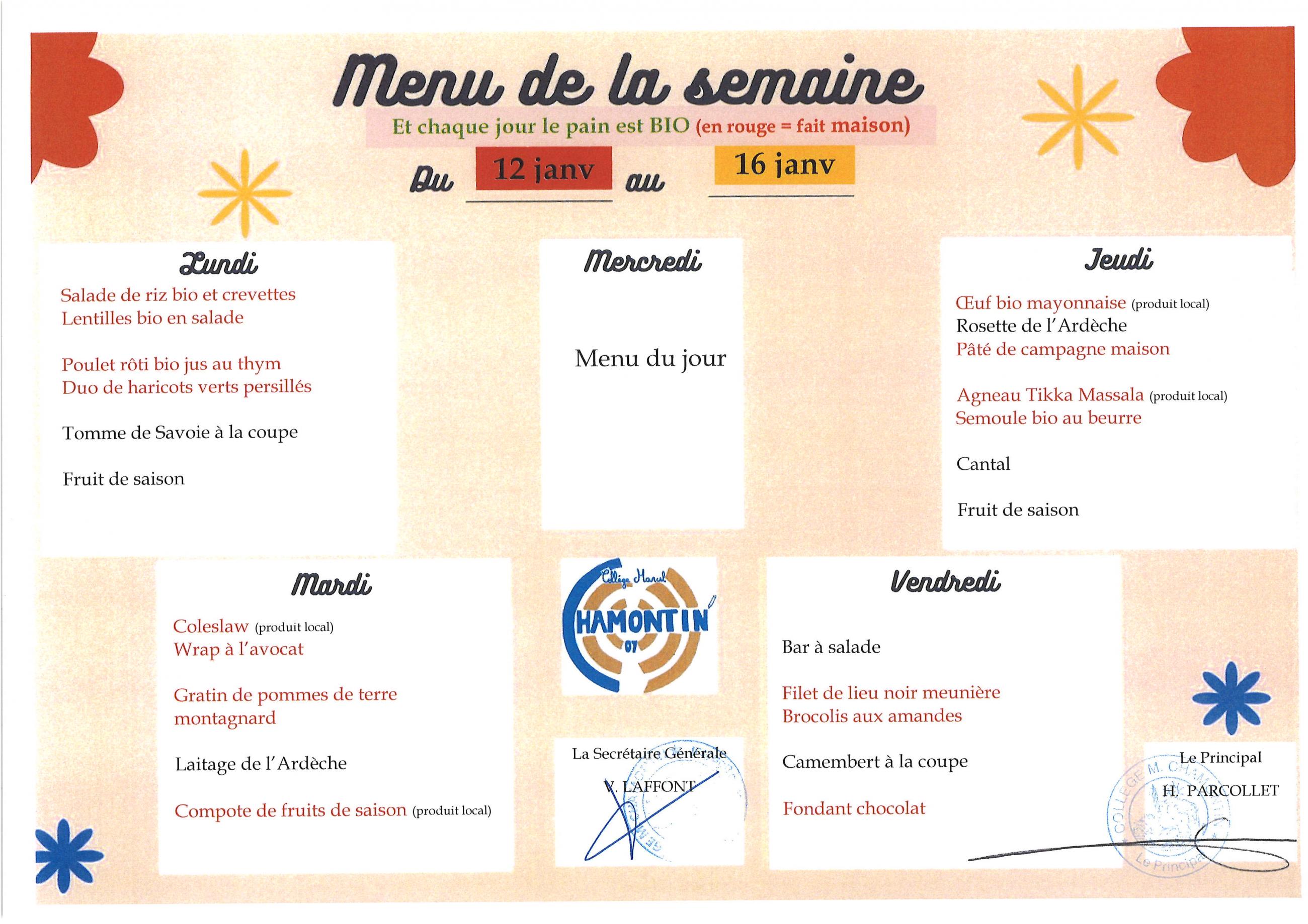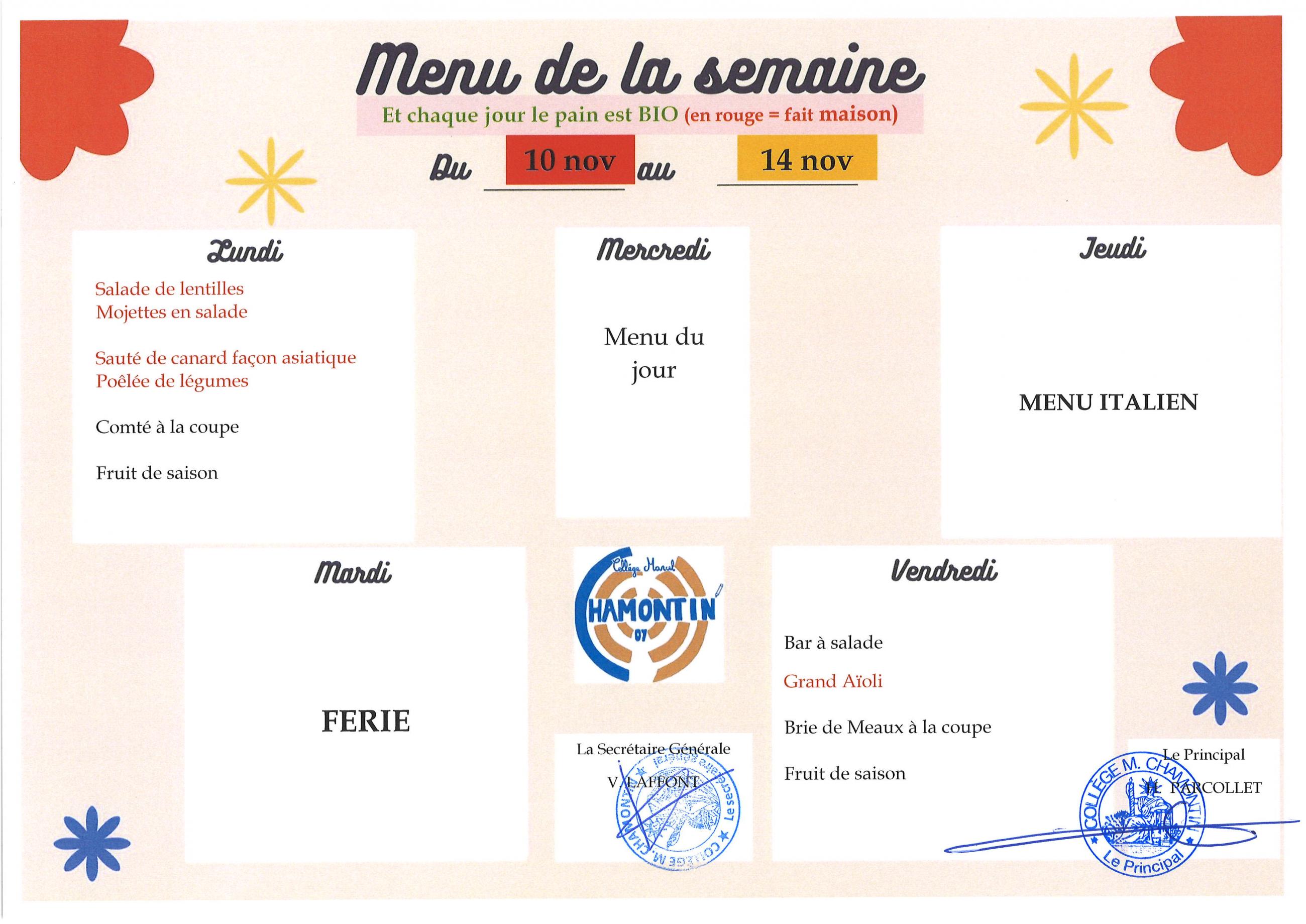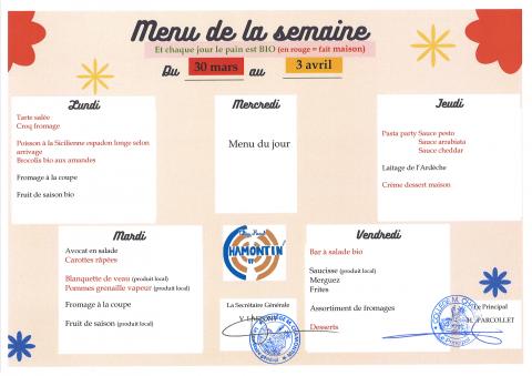 Menu de la cantine